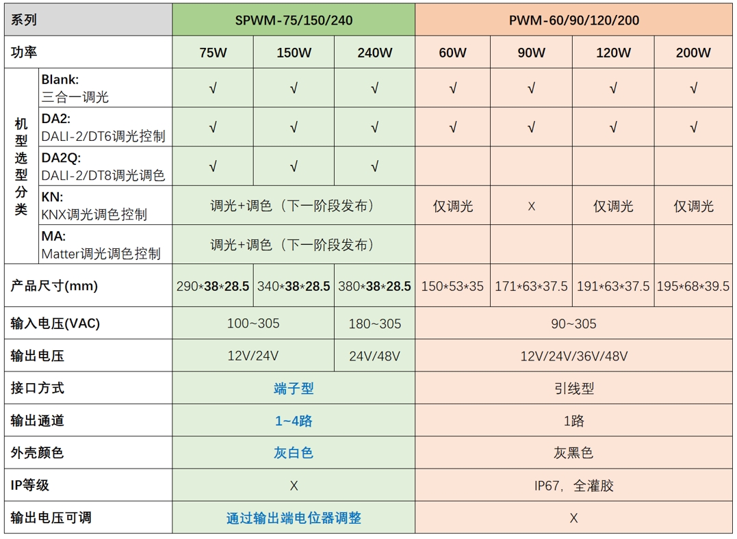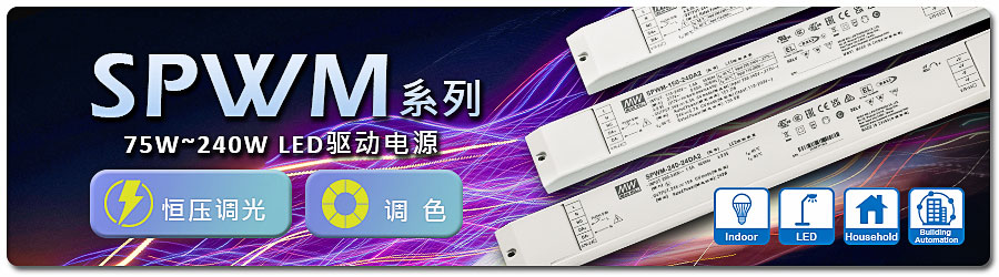 明纬深耕 LED 照明驱动与应用领域多年,自推出PWM系列恒压调光LED驱动电源后,获得良好的市场反响,现接续推出SPWM系列恒压调光/调色的机型,与原有的PWM系列构成互补关系,进一步丰富恒压调光/调色的LED驱动电源产品线。