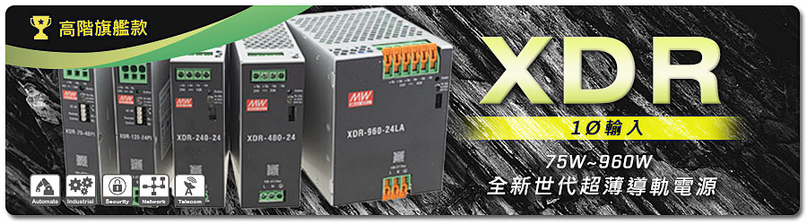 為滿足更高規格及更嚴苛環境條件之應用需求,明緯緊接著再度重磅推出「高階旗艦款 XDR 系列」75W~960W。XDR 上市後,與 XDR-E 形成高階與經濟雙檔次產品陣容,提供市場更全面且多元的電源選擇。