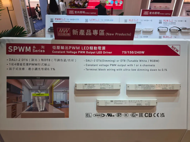 SPWM系列PWM調光驅動電源:作為明緯PWM調光機型的延伸與互補,該系列采端子式輸出的設計,用戶能自主靈活設定調光/調色溫/調色彩等多種工作模式,達成“一機多用”的效果。產品支援多種控制方式,如三合一調光/DALI-2/KNX/Matter等。胡敏強強調:“SPWM系列是一款集“萬千寵愛於一身”的產品,進一步拓寬了PWM技術的應用邊界,為客戶提供更具性價比的解決方案。”